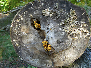 Vi fandt en træstub, hvor vi fik noget at drikke og lidt chokolade